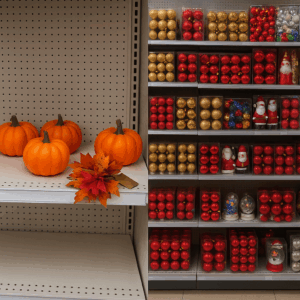 Ich stand wirklich da und war geschockt. Ehrlich gesagt hat es mich fast schon sauer gemacht. Kann man den Jahreszeiten nicht mehr ihren eigenen Raum lassen? Muss man den Herbst überspringen, als wäre er nur eine lästige Zwischenstation auf dem Weg zum Konsumfest?